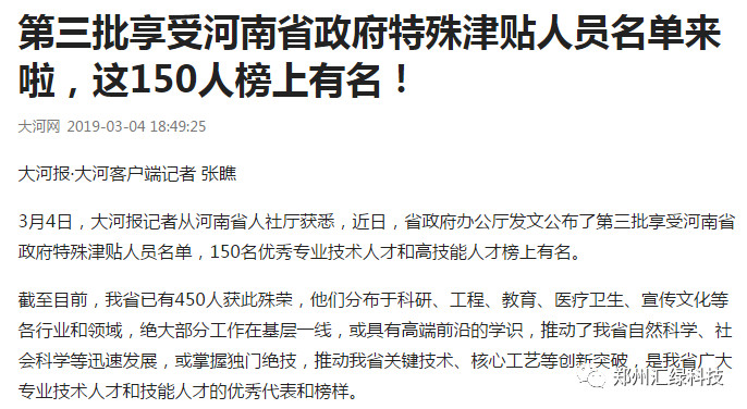 據悉,河南省政府特殊津貼制度建立于2014年,每2年選拔1次享受省政府特殊津貼人員,選拔對象為在豫在職的專(zhuān)業(yè)技術(shù)人才和高技能人才,每次選拔150人左右。對經(jīng)省政府批準的享受特殊津貼人員,每人一次性發(fā)給特殊津貼1.8萬(wàn)元(免征個(gè)人所得稅),并由省政府頒發(fā)"河南省政府特殊津貼證書(shū)"。省政府特殊津貼制度有效延伸了國務(wù)院特殊津貼制度的激勵作用,并帶動(dòng)鄭州、許昌、南陽(yáng)、駐馬店、固始等地相繼建立市、縣級政府特殊津貼制度,使我省的高層次人才選拔體系和人才激勵機制得到了進(jìn)一步完善。