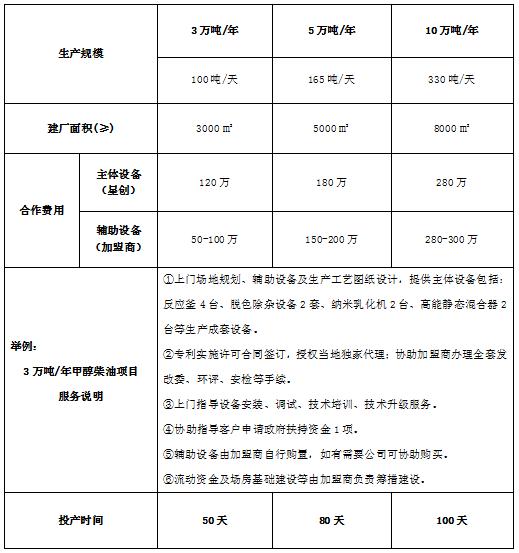 6)甲醇柴油生產(chǎn)過(guò)程無(wú)“三廢”污染,屬?lài)掖罅μ岢h(huán)保、高新技術(shù)項目,國家有稅收減免政策支持。生產(chǎn)甲醇柴油無(wú)需高溫、高壓,生產(chǎn)過(guò)程安全,且規??纱罂尚?。